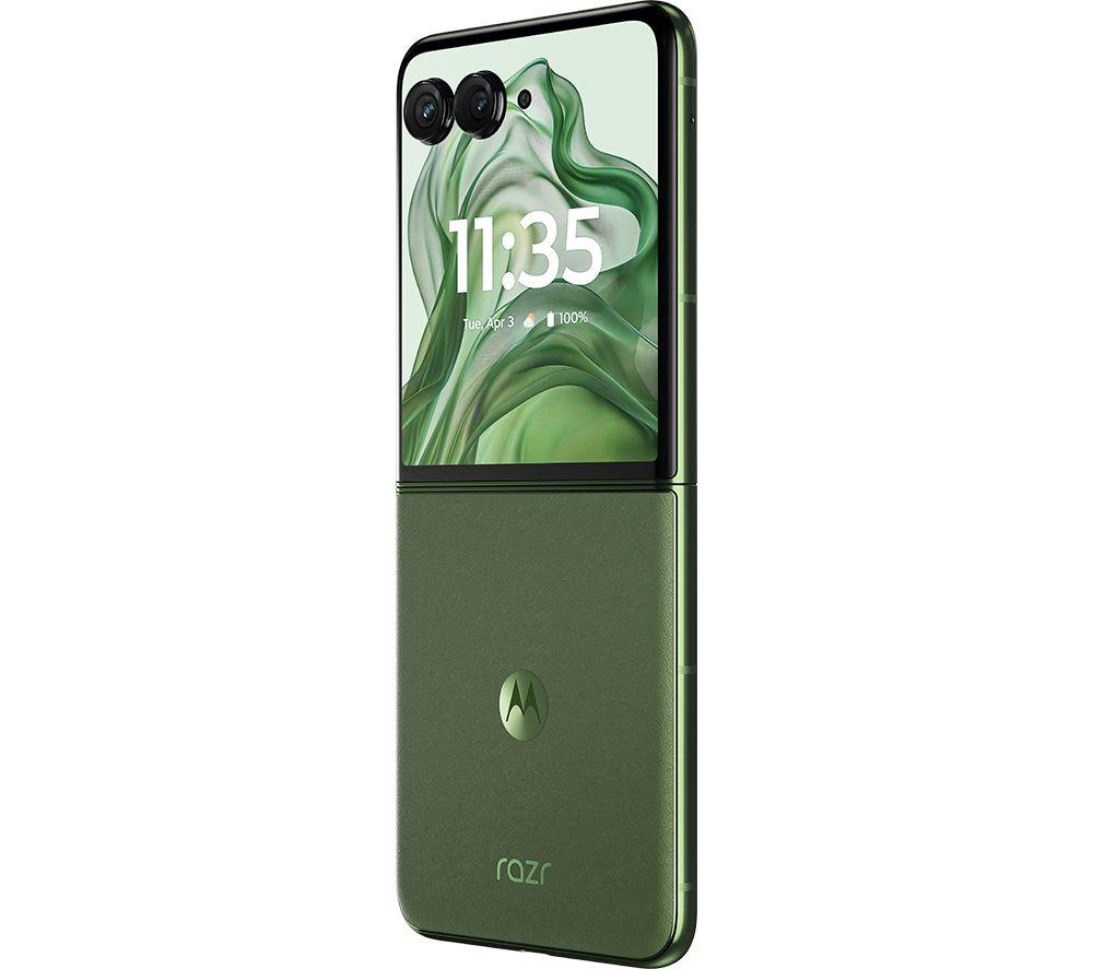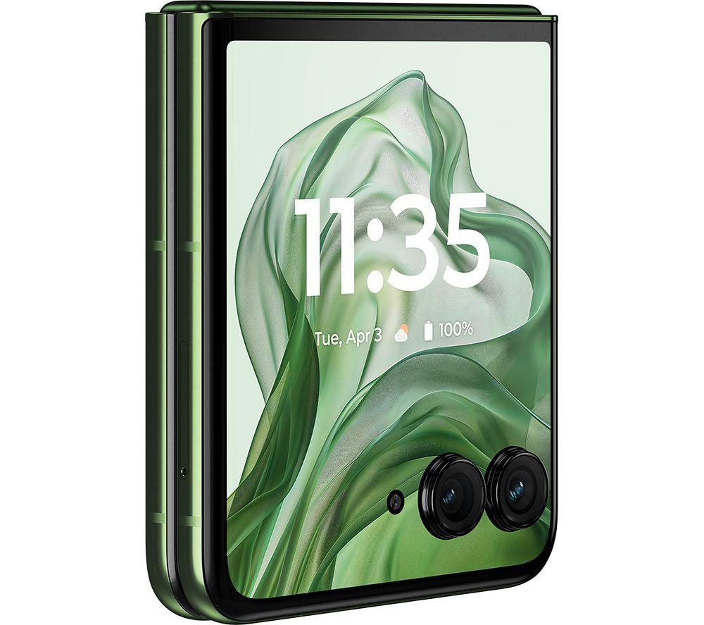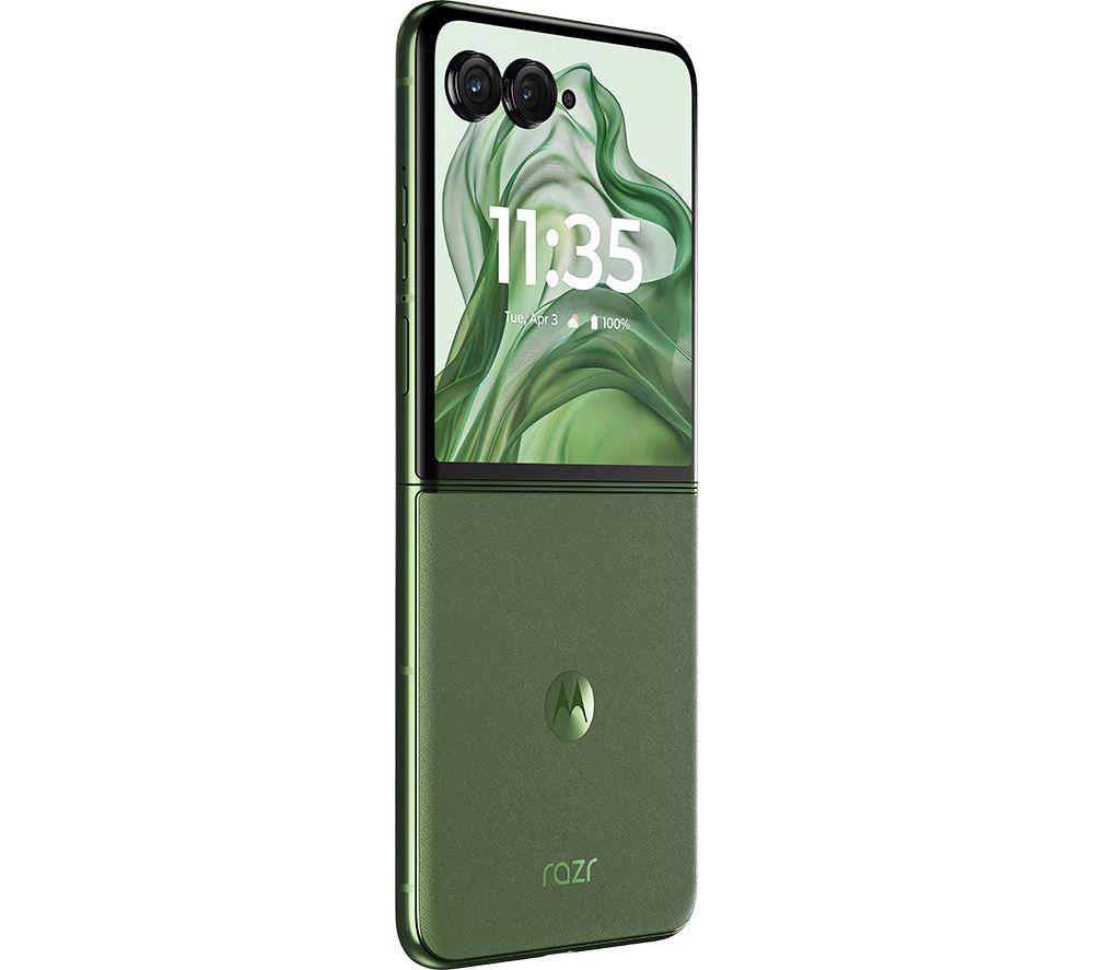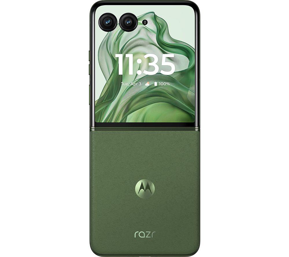 The Razr 50 Ultra will turn some heads. Its 4" cover screen goes from edge to edge and flows around the main camera system. That means you can use your apps with the phone closed. And you can take selfies on the Dual 50 MP camera system. So crisp. And when you want to go big, the 6.9” OLED display is just a flip away. So satisfying. It's got stunning colours and the 165 Hz refresh rate brings games and movies to life. Good to know - With the Snapdragon 8 Gen 3 processor, there isn't an app or a game you couldn't run - Even the outer screen will make everything look smooth with its 165 Hz refresh rate - It's not just open or closed – with Flex View, you can use the phone at different angles - You'll look super-sharp in selfies and video calls thanks to the 32 MP front facing camera - The cameras are powered by moto ai, which makes your pics and videos look even better - To keep your data safe, there's a fingerprint scanner on the side, or a face unlock option - The included 45W TurboPower charger can juice up the 4000 mAh battery in a jiffy - To match the beautiful screen, there are Dolby Atmos stereo speakers with full, immersive sound
