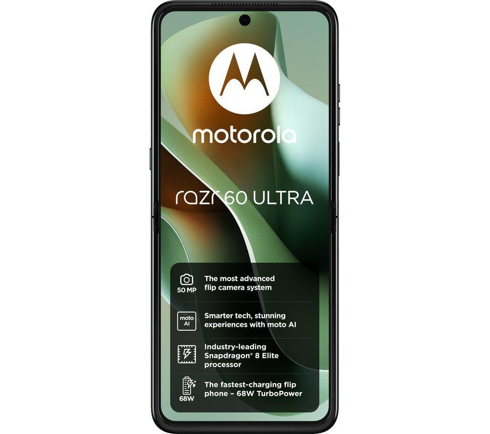 The Razr 60 Ultra is designed to impress. Its 4" outer screen stretches from edge to edge, seamlessly flowing around the main camera system. This lets you use your apps even when the phone is closed. And you can snap crispy selfies with the dual 50 MP camera. When you want a larger view, just flip open the 7” OLED display. The vibrant colours and 165 Hz refresh rate make games and movies come alive, providing a truly immersive experience. Good to know - With the Snapdragon 8 Elite processor, there isn't an app or a game you couldn't run - Even the outer screen will make everything look smooth with its 165 Hz refresh rate - It's not just open or closed – with Flex View, you can use the phone at different angles - You'll look super-sharp in selfies and video calls thanks to the 50 MP front facing camera - The cameras are powered by moto AI, which makes your pics and videos look even better - To keep your data safe, there's a fingerprint scanner on the side, or a face unlock option - To match the beautiful screen, there are Dolby Atmos stereo speakers with full, immersive sound