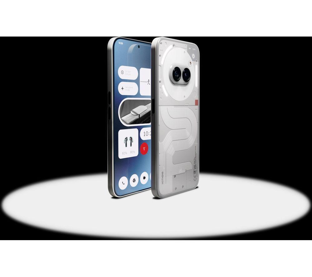 Nothing's Phone (2a) is everything but boring. It's rocking a custom MediaTek processor that'll make your apps and tabs run like clockwork. Fuelled by a massive 5000 mAh battery, it'll keep you going for up to 2 days on a single charge. That's nothing to sneeze at. And the 6.7" AMOLED display is just as impressive. It's sharp, vivid and super bright. There are two 50 MP cameras on the back. One wide, one ultra-wide – both super sharp whether it's day or night. Around the cameras is the Glyph Interface. It's an array of LED lights that let you know what's up when the phone's screen-down. It can show you custom notifications, count down a timer, dance to your jams and so on. Oh and the back is transparent, as if it wasn't cool enough already.Good to know- It's running Nothing OS 2.5 (based on Android 14) which is just as fun, customisable, and distinctive as the hardware- For Insta-worthy selfies and professional video calls, there's a 32 MP front camera- The screen runs at a 120 Hz refresh rate for smooth and snappy swiping- There's a fingerprint scanner and facial recognition to make sure only you can get in- It supports 45 W fast charging (adapter sold separately), so you won't get stuck on an empty tank- There's no need to worry about rain showers, thanks to the IP54 water and dust resistance- Made with 100% recycled aluminium and plastic-free packaging, this phone was built with the planet in mind
