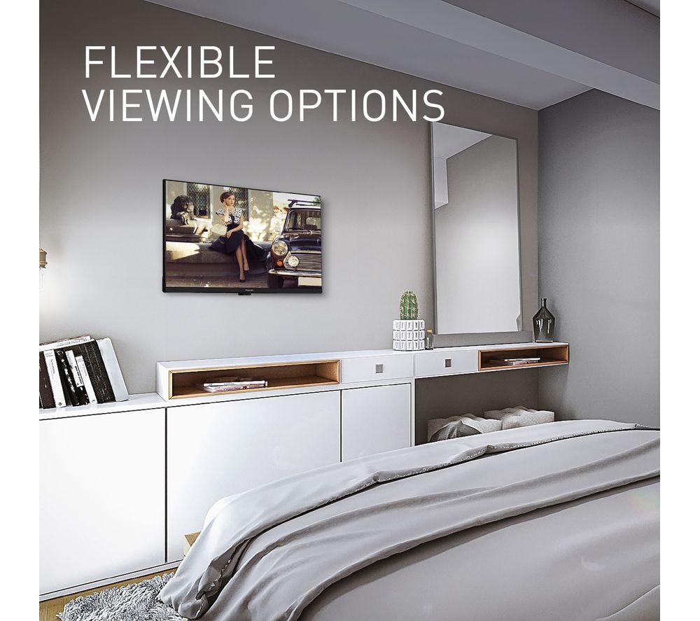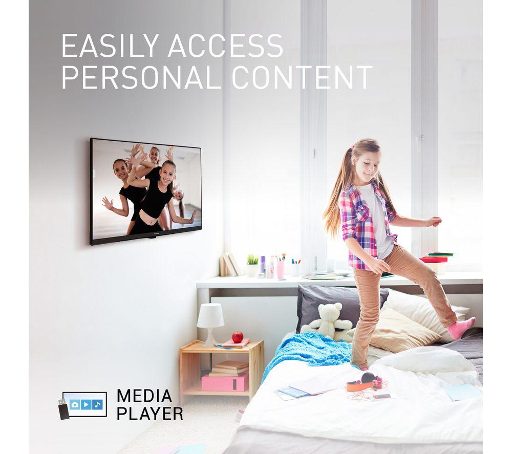 - No subscription, no hassle – enjoy over a hundred TV channels and radio stations with Freeview HD- The high contrast display means blacks and deeper and whites are brigher- Surround sound processing makes movies and shows feel more immersive- Select from 5 picture modes including cinema and sport for the best experience- Pop in a USB to jam out to your tunes or relive your holiday memories with photo and video slideshows________________________________Please note: Some services (including tuner) are only available in the UK.