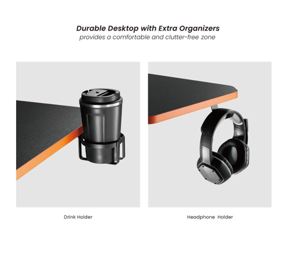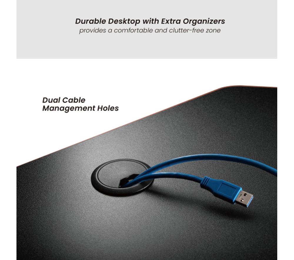 - Set up your monitor, laptop and keyboard on the ProperAV Computer Desk which can hold up to 50 kg - It's dual cable management system keeps all your wires neat and tidy - The drink and headphone holder means you can keep your worksurface clutter free