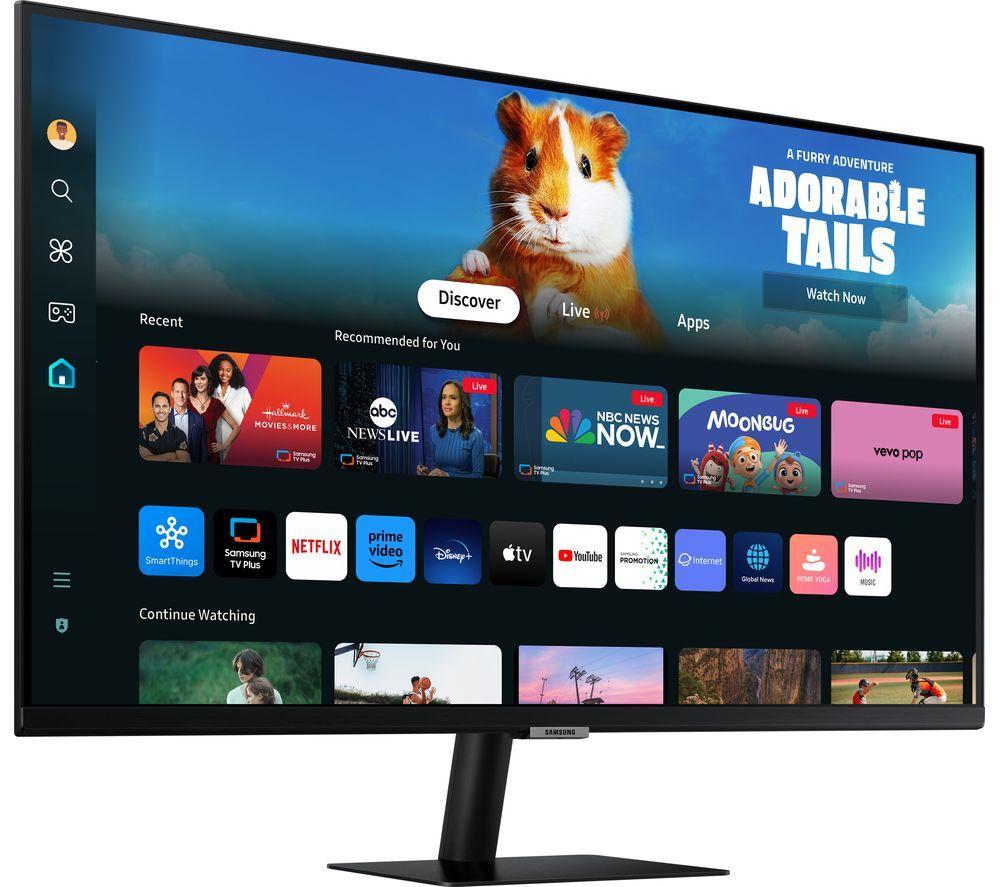 The Samsung Smart Monitor M5 is packed with all your favourite streaming apps, so you'll never miss a second of those binge-worthy series and summer blockbusters. For your working-from-home days, there's Workspace which lets you remotely access another PC, use Microsoft 365 and connect to Samsung mobile devices. And when it's time to kick back, you can play Xbox titles and other games on the Samsung Gaming Hub – no downloads, no console, no fuss.Good to know- Adaptive Picture automatically adjusts the brightness to the light in the room – no more straining your eyes on sunny days- Adaptive Sound adjusts the audio based on what you're watching, so the speech is as clear as the soundtrack- With two USB ports, you can hook up your mouse and keyboard, gamepad, hard drive or even a webcam- Control all your smart home devices from one place with the Samsung SmartThings app- Start every day with personalised content with the My Contents feature________________________________Please note:- This product does not include a TV aerial socket or tuner.- Some apps & services are only available in the UK. Apps & services may be removed or no longer supported by third party content providers at any time. Some apps & services may not be available at launch and may require a firmware update before becoming available. Some services require an account and/or subscription fee.