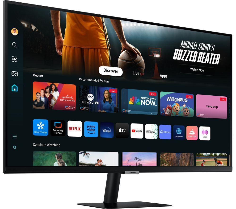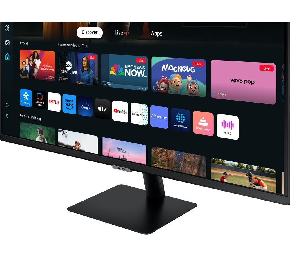 The Samsung Smart Monitor M7 is packed with all your favourite streaming apps, so you'll never miss a second of those binge-worthy series and summer blockbusters. It all looks good on the 4K Ultra HD display – there's support for HDR10 too. For your working-from-home days, there's Workspace which lets you remotely access another PC, use Microsoft 365 and connect to Samsung mobile devices. And when it's time to kick back, you can play Xbox titles and other games on the Samsung Gaming Hub – no downloads, no console, no fuss. Good to know - Adaptive Picture automatically adjusts the brightness to the light in the room – no more straining your eyes on sunny days - Adaptive Sound adjusts the audio based on what you're watching, so the speech is as clear as the soundtrack - With two USB ports, you can hook up your mouse and keyboard, gamepad, hard drive or even a webcam - Control all your smart home devices from one place with the Samsung SmartThings app - Start every day with personalised content with the My Contents feature ________________________________ Please note: - This product does not include a TV aerial socket or tuner. - Some apps & services are only available in the UK. Apps & services may be removed or no longer supported by third party content providers at any time. Some apps & services may not be available at launch and may require a firmware update before becoming available. Some services require an account and/or subscription fee.