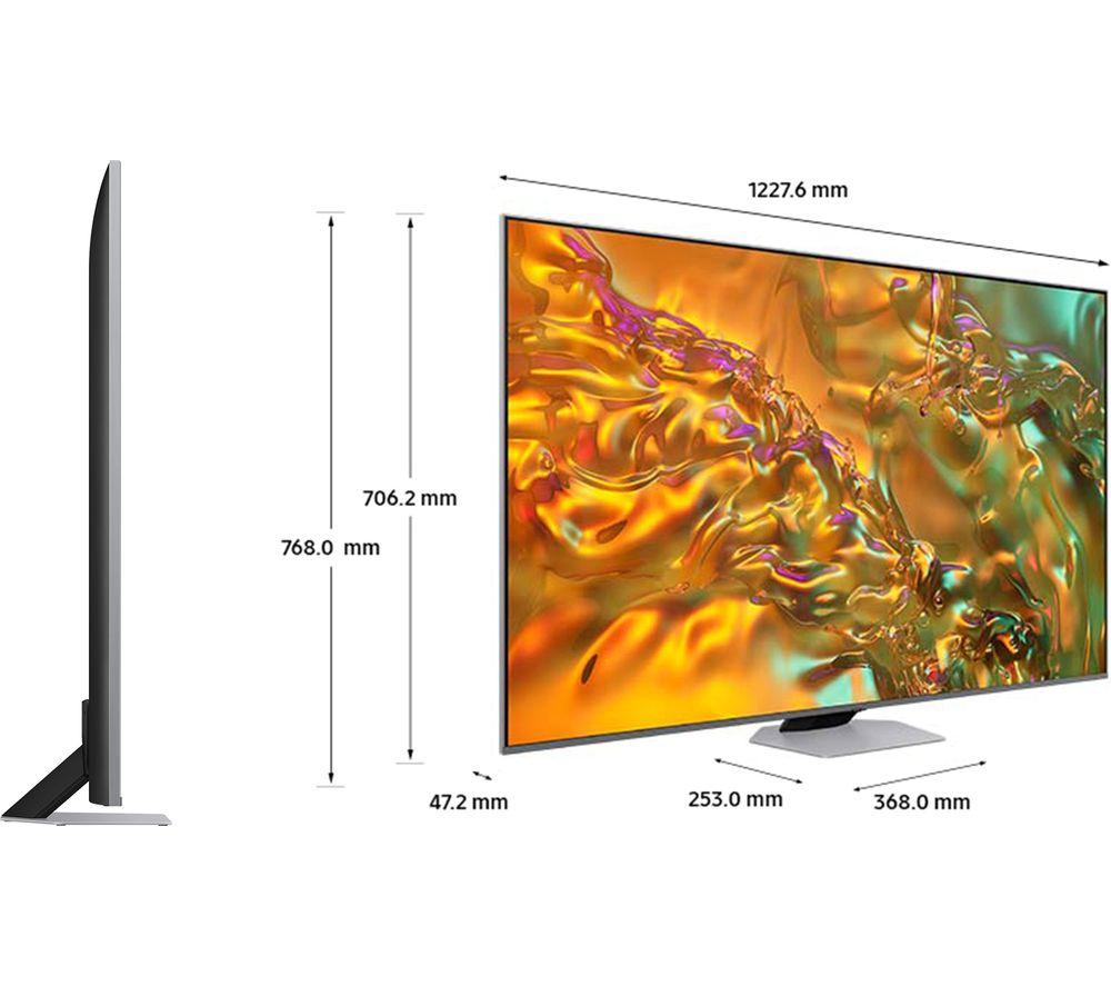 Your content gets the VIP treatment with this Samsung Q80D TV. Quantum Dots transform light into lifelike, accurate colour for natural looking scenes. The sky is brighter, the grass is greener, and the details are clearer. It's even been given the thumbs up by Pantone (and they know a thing or two about colour). Those annoying halos are a thing of the past with Direct Full Array - instead you get the perfect balance of bright whites and dark blacks. The NQ4 AI Gen2 Processor is the brain of the TV. It's busy in the background boosting the brightness, contrast, and sound of everything you watch. Plus, HD content gets an upgrade to near 4K quality. And it's able to do this on the fly using AI and 20 neural networks. Clever stuff.Good to know- Quantum HDR+ throws you right into lifelike action and let's you see every little detail in mind-boggling clarity- Dolby Atmos uses the TV's speakers to create an immersive surround sound effect – you'll love how incredible everything sounds- Tip the odds in your favour with Motion Xcelerator - it doubles the refresh rate to 120 Hz for super smooth gameplay- Sound is more realistic with Object Tracking Sound Lite – the TV speakers follow the on-screen action- The Boundless Design is made to look good from any angle with nearly no bezel and a clean back- Get binging on a huge collection of films, TV shows, and all your favourite catch-up apps on Samsung's smart TV platform- Play Xbox titles and other games on the Samsung Gaming Hub – no downloads, no console, no fuss________________________________Please note: - Samsung Account required to access network-based smart services and apps. If you choose not to log-in, you will only get connection to terrestrial TV (applicable to devices with tuners only) and external devices, e.g. via HDMI.- Some apps & services (including tuner) are only available in the UK. Apps & services may be removed or no longer supported by third party content providers at any time. Some apps & services may not be available at launch and may require a firmware update before becoming available. Some services require an account and/or subscription fee.