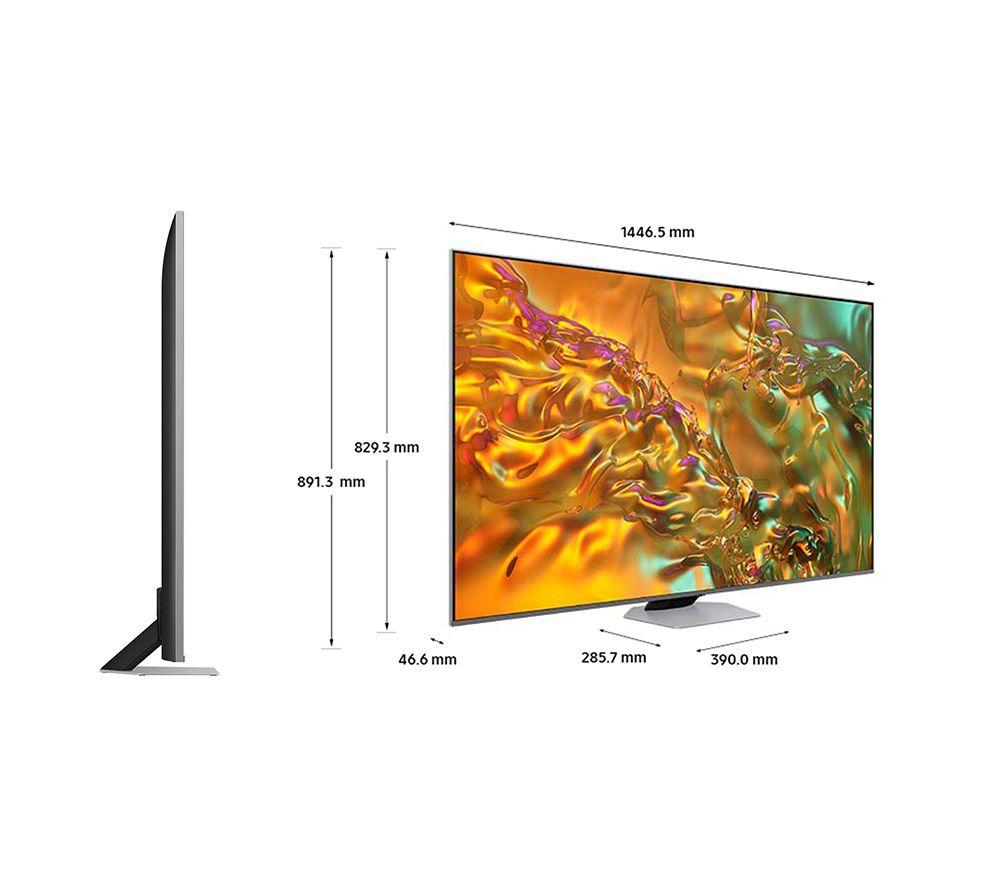 Your content gets the VIP treatment with this Samsung Q80D TV. Quantum Dots transform light into lifelike, accurate colour for natural looking scenes. The sky is brighter, the grass is greener, and the details are clearer. It's even been given the thumbs up by Pantone (and they know a thing or two about colour). Those annoying halos are a thing of the past with Direct Full Array - instead you get the perfect balance of bright whites and dark blacks. The NQ4 AI Gen2 Processor is the brain of the TV. It's busy in the background boosting the brightness, contrast, and sound of everything you watch. Plus, HD content gets an upgrade to near 4K quality. And it's able to do this on the fly using AI and 20 neural networks. Clever stuff.Good to know- Quantum HDR+ throws you right into lifelike action and let's you see every little detail in mind-boggling clarity- Dolby Atmos uses the TV's speakers to create an immersive surround sound effect – you'll love how incredible everything sounds- Tip the odds in your favour with Motion Xcelerator - it doubles the refresh rate to 120 Hz for super smooth gameplay- Sound is more realistic with Object Tracking Sound Lite – the TV speakers follow the on-screen action- The Boundless Design is made to look good from any angle with nearly no bezel and a clean back- Get binging on a huge collection of films, TV shows, and all your favourite catch-up apps on Samsung's smart TV platform- Play Xbox titles and other games on the Samsung Gaming Hub – no downloads, no console, no fuss________________________________Please note: - Samsung Account required to access network-based smart services and apps. If you choose not to log-in, you will only get connection to terrestrial TV (applicable to devices with tuners only) and external devices, e.g. via HDMI.- Some apps & services (including tuner) are only available in the UK. Apps & services may be removed or no longer supported by third party content providers at any time. Some apps & services may not be available at launch and may require a firmware update before becoming available. Some services require an account and/or subscription fee.