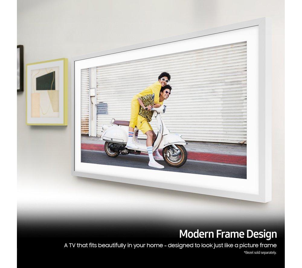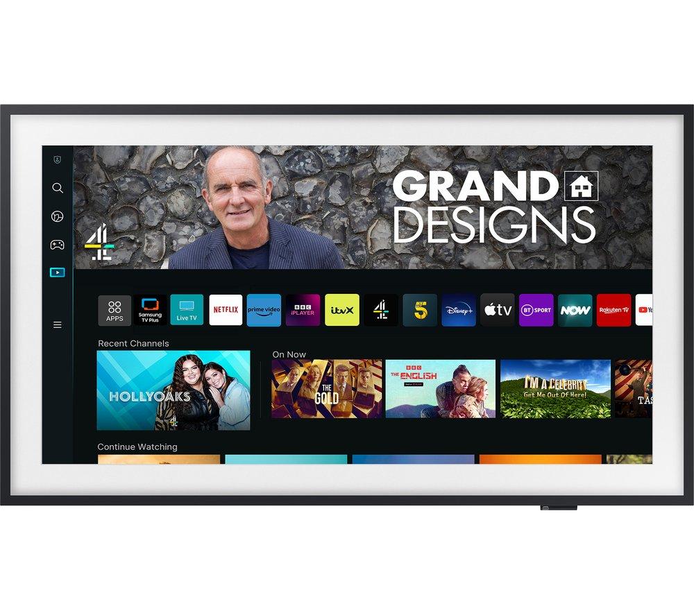 The Frame TV from Samsung is no ordinary TV. It'll blend into your home and look just like a picture frame thanks to a beautifully slim design and swappable bezel frame (each sold separately). You'll be spoilt for choice with over 2000 pieces in the Art Store – pick out your favourites and change the feel of your room in an instant. The Matte Display absorbs reflections, so there won't be any distracting glare, even in a bright room. You'll love how good your entertainment looks too. Quantum Dots transform light into lifelike, accurate colour for natural looking scenes. The sky is brighter, the grass is greener, and the details are clearer. It's even been given the thumbs up by Pantone (and they know a thing or two about colour). Good to know - Sound is more realistic with Object Tracking Sound Lite – the TV speakers follow the on-screen action - You'll be able to mount it flush to your wall with the Slim Fit Wall Mount – just like a real piece of art - Clear the clutter by plugging in your consoles, boxes, and gadgets into the Mini One Connect box – it connects with a single cable to your TV - It'll automatically switch to Art Mode when you walk in the room and back to standby when you leave, helping you save energy - Play Xbox titles and other games on the Samsung Gaming Hub – no downloads, no console, no fuss - Get binging on a huge collection of films, TV shows, and all your favourite catch-up apps on Samsung's smart TV platform ________________________________ Please note: - Samsung Account required to access network-based smart services and apps. If you choose not to log-in, you will only get connection to terrestrial TV (applicable to devices with tuners only) and external devices, e.g. via HDMI. - Some apps & services (including tuner) are only available in the UK. Apps & services may be removed or no longer supported by third-party content providers at any time. Some apps & services may not be available at launch and may require a firmware update before becoming available. Some services require an account and/or subscription fee.