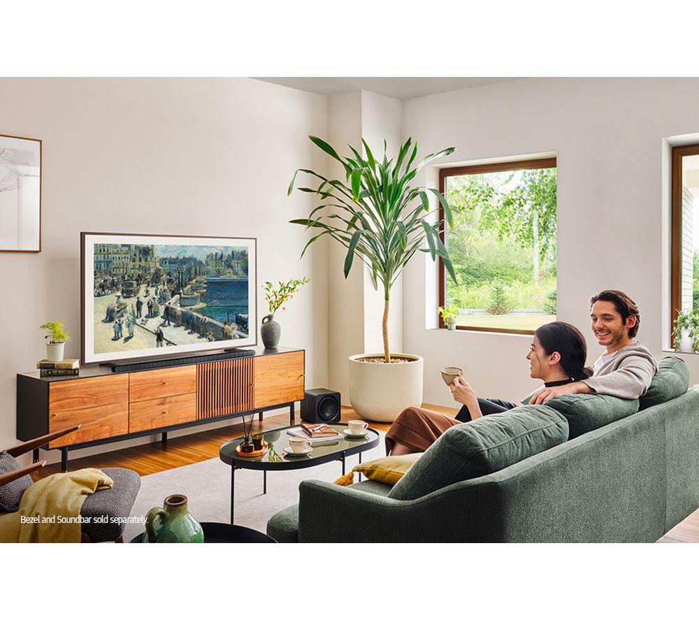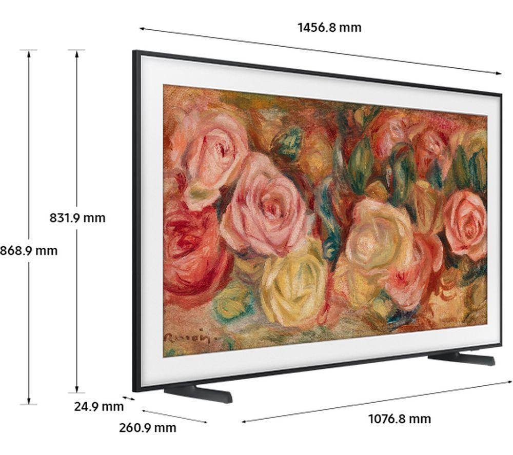 The Frame TV from Samsung is no ordinary TV. It'll blend into your home just like a picture frame thanks to a beautifully slim design and swappable bezel frame (each sold separately). When it's not movie time, Art Mode transforms the screen into a picture gallery. You'll be spoilt for choice with over 2,500 pieces in the Art Store – pick out your favourites and change the feel of your room in an instant. The Matte Display absorbs reflections, so there won't be any distracting glare, even in a bright room. You'll love how good your entertainment looks too. Quantum Dots transform light into lifelike, accurate colour for natural looking scenes. The sky is brighter, the grass is greener, and the details are clearer. It's even been given the thumbs up by Pantone (and they know a thing or two about colour).Good to know- Dolby Atmos uses the TV's speakers to create an immersive surround sound effect – you'll love how incredible everything sounds- You'll be able to mount it flush to your wall with the included Slim Fit Wall Mount – just like a real piece of art- Clear the clutter by plugging in your gadgets into the One Connect box – it connects with One Near-Invisible Cable to your TV- Motion sensor automatically switches the TV to Art Mode when you walk in the room and back to standby when you leave, helping you save energy- The Quantum Processor 4K uses AI to optimise the brightness, contrast, resolution, and sound of everything you watch- With Quantum HDR, you can enjoy natural details and depth, even in the darkest of scenes________________________________Please note: - Samsung Account required to access network-based smart services and apps. If you choose not to log-in, you will only get connection to terrestrial TV (applicable to devices with tuners only) and external devices, e.g. via HDMI. - Some apps & services (including tuner) are only available in the UK. Apps & services may be removed or no longer supported by third-party content providers at any time. Some apps & services may not be available at launch and may require a firmware update before becoming available. Some services require an account and/or subscription fee.- Separate Art Store subscription and Samsung Account required to access full selection of artwork.