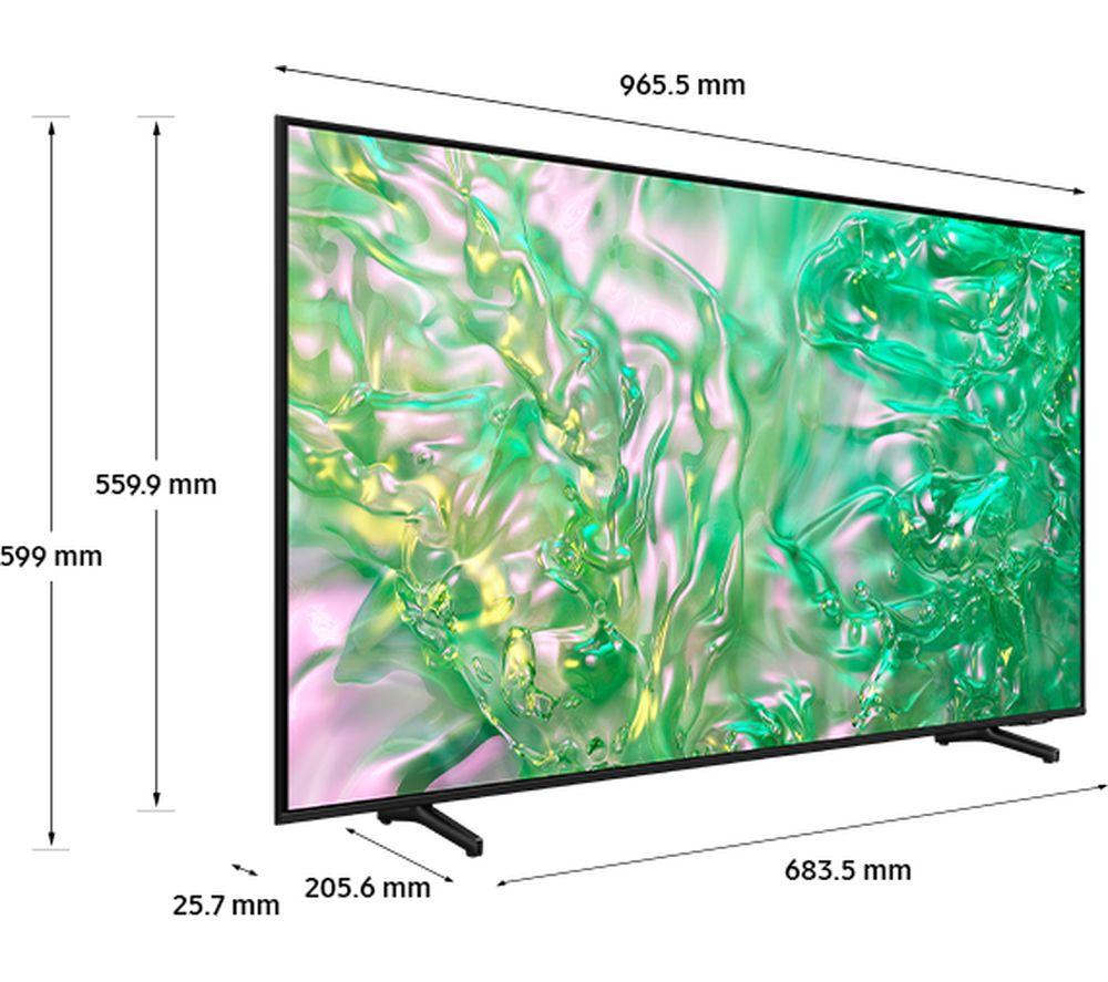 Dynamic Crystal Colour on this Samsung DU8000 TV brings rich spectrum of hues and tones to your screen – over one billion shades in fact. That's 64 times more than conventional 4K TVs. You'll love how good documentaries and movies look. Sound is more realistic too thanks to Object Tracking Sound Lite – the TV speakers follow the on-screen action. The Crystal Processor 4K is the brain of the TV. It's hard at work in the background boosting the picture and sound of everything you watch in real-time. Good to know - The AirSlim Design is made to look good from any angle with a clean back and simple cable solution - Play Xbox titles and other games on the Samsung Gaming Hub – no downloads, no console, no fuss - Get binging on a huge collection of films, TV shows, and all your favourite catch-up apps on Samsung's smart TV platform - Adaptive Sound adjusts the audio based on what you're watching, so the speech is as clear as the soundtrack - With HDR powered by HDR10+, you'll see all the details, even in extra gloomy or brightly lit scenes ________________________________ Please note: - Samsung Account required to access network-based smart services and apps. If you choose not to log-in, you will only get connection to terrestrial TV (applicable to devices with tuners only) and external devices, e.g. via HDMI. - Some apps & services are only available in the UK. Apps & services may be removed or no longer supported by third party content providers at any time. Some apps & services may not be available at launch and may require a firmware update before becoming available. Some services require an account and/or subscription fee.
