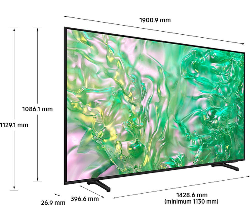Dynamic Crystal Colour on this Samsung DU8000 TV brings rich spectrum of hues and tones to your screen – over one billion shades in fact. That's 64 times more than conventional 4K TVs. You'll love how good documentaries and movies look. Sound is more realistic too thanks to Object Tracking Sound Lite – the TV speakers follow the on-screen action. The Crystal Processor 4K is the brain of the TV. It's hard at work in the background boosting the picture and sound of everything you watch in real-time.Good to know- The AirSlim Design is made to look good from any angle with a clean back and simple cable solution- Play Xbox titles and other games on the Samsung Gaming Hub – no downloads, no console, no fuss- Get binging on a huge collection of films, TV shows, and all your favourite catch-up apps on Samsung's smart TV platform- Adaptive Sound adjusts the audio based on what you're watching, so the speech is as clear as the soundtrack- With HDR powered by HDR10+, you'll see all the details, even in extra gloomy or brightly lit scenes________________________________Please note:- Samsung Account required to access network-based smart services and apps. If you choose not to log-in, you will only get connection to terrestrial TV (applicable to devices with tuners only) and external devices, e.g. via HDMI. - Some apps & services are only available in the UK. Apps & services may be removed or no longer supported by third party content providers at any time. Some apps & services may not be available at launch and may require a firmware update before becoming available. Some services require an account and/or subscription fee.