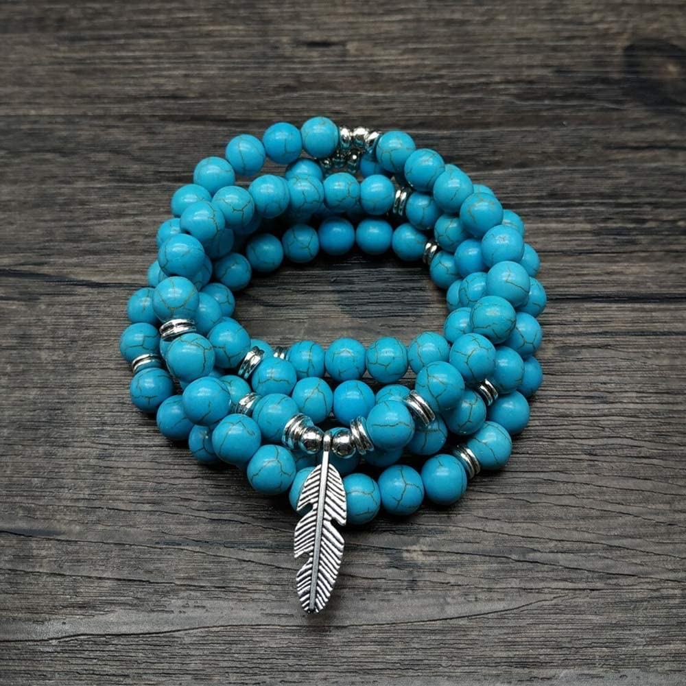 • ❁ 100% HANDMADE ITEMS: A gorgeous japa mala 108 beads wrist wrap bracelet /necklace is processed with natural healing stone beads and carefully manned with a leaf charm and accessories.