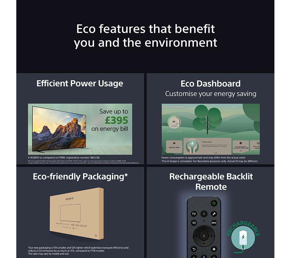 The Sony BRAVIA 7 brings a bit of that big screen magic to your living room with its QLED XR Mini LED display. Thousands of mini LEDs are packed into the screen, all precisely controlled by the XR Backlight Master Drive. This translates to impressively deep blacks, subtle shadow details, and luminous highlights in every scene. It's the very same tech that's used for Sony's pro monitors in Tinseltown. Sony have teamed up with some of the world's top streaming studios to develop calibrated modes for the likes of Netflix and Prime Video. You'll be able to enjoy movies just as the creators intended, without playing around in the settings menu. Plus, sound is in perfect sync with Acoustic Multi-Audio. It turns the screen into a speaker – literally – with sound coming from where the action is happening. Even in a hectic battle scene, you'll be able to pinpoint the clash of swords. Good to know - The XR Processor intelligently analyses and recognises what's on the screen for better realism - For brightness across the screen and brilliant colours, there's XR Triluminous Pro and XR Contrast Booster - Dolby Atmos creates a virtual surround sound experience without the need for extra speakers - Blockbuster movies look oh-so-good with support for IMAX Enhanced and Dolby Vision - Booming explosions but whisper-quiet voices? Voice Zoom 3 makes it easy to hear what they're saying - The 4-way multi-position stand can be adjusted to suit your furniture and soundbar - Check your power usage and make positive changes in the Eco Dashboard 2 – the Eco Remote is rechargeable too - Jump straight into your shows or discover something new on Google TV with Google Assistant - The Sony Pictures Core app has tons of movies, plus you can redeem 10 for free (within 24 months) - It's packed with gaming tech like 4K/120 fps, VRR, ALLM – you can easily access everything in the Game Menu 2 ________________________________ Please note: Some apps & services (including tuner) are only available in the UK. Apps & services may be removed or no longer supported by third party content providers at any time. Some apps & services may not be available at launch and may require a firmware update before becoming available. Some services require an account and/or subscription fee.