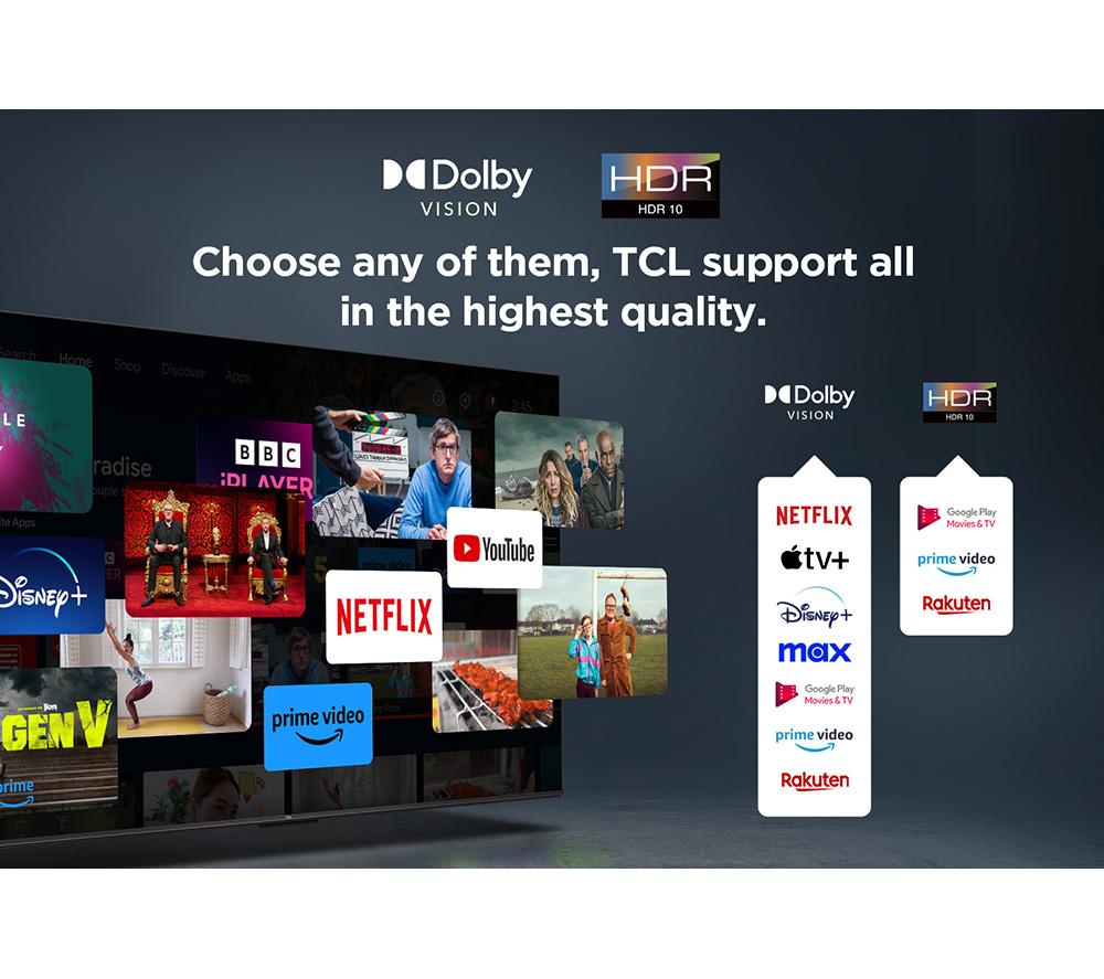 Jump straight into the good stuff with Fire TV on this TCL smart TV. You can watch TV shows and movies on your favourite streaming apps, like Prime Video, Netflix, and Disney+. The easy-to-use home screen puts it all at your fingertips. And it all looks great on the 4K HDR display. The light and dark parts of every scene are on point with Dolby Vision and HDR10. There's Dolby Atmos for sound too. It creates a virtual surround sound effect without the need for rear speakers.Good to know- Freely brings you live TV channels and on-demand content over WiFi – no aerial, no fees, no hassle- Find what you want quicker or control your telly using the Alexa voice remote- Share your phone screen and stream videos or show photos using Miracast________________________________Please note: Some apps & services (including tuner) are only available in the UK. Apps & services may be removed or no longer supported by third party content providers at any time. Some apps & services may not be available at launch and may require a firmware update before becoming available.