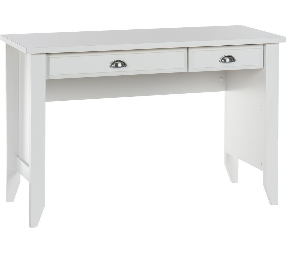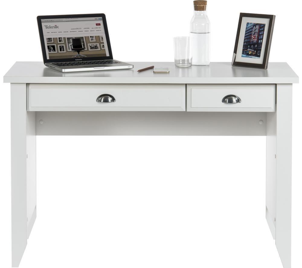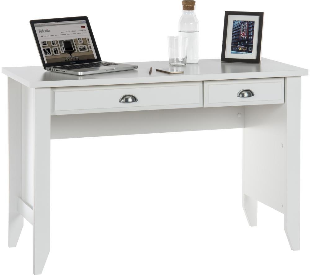 The Teknik 5411204 Laptop Desk brings a stylishly classic look to your home office with a unique leg design, silver effect handles and a soft white finish.With 2 handy drawers, you'll have plenty of storage space within reach. And the flip down shelf gives you easy access to your keyboard when you need it, but easily hides it away when you finish up.Plus, assembly is simple, so you'll be up and running in no time.