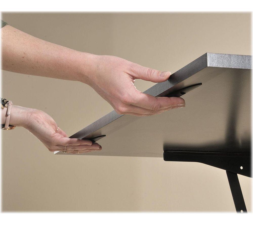 Good to know - Work sitting or standing up so you're always in the best position with this convertible Teknik desk - Keep your workspace tidy with the hidden storage area beneath the top - Easily find your documents and stationary in one of the 3 drawers - Pop your most used items on the open shelf for easy access to them - The T-lock drawer system makes it quick and easy to assemble yourself