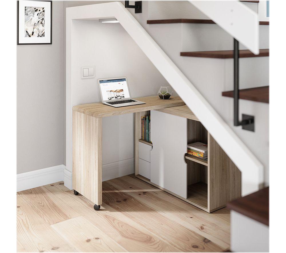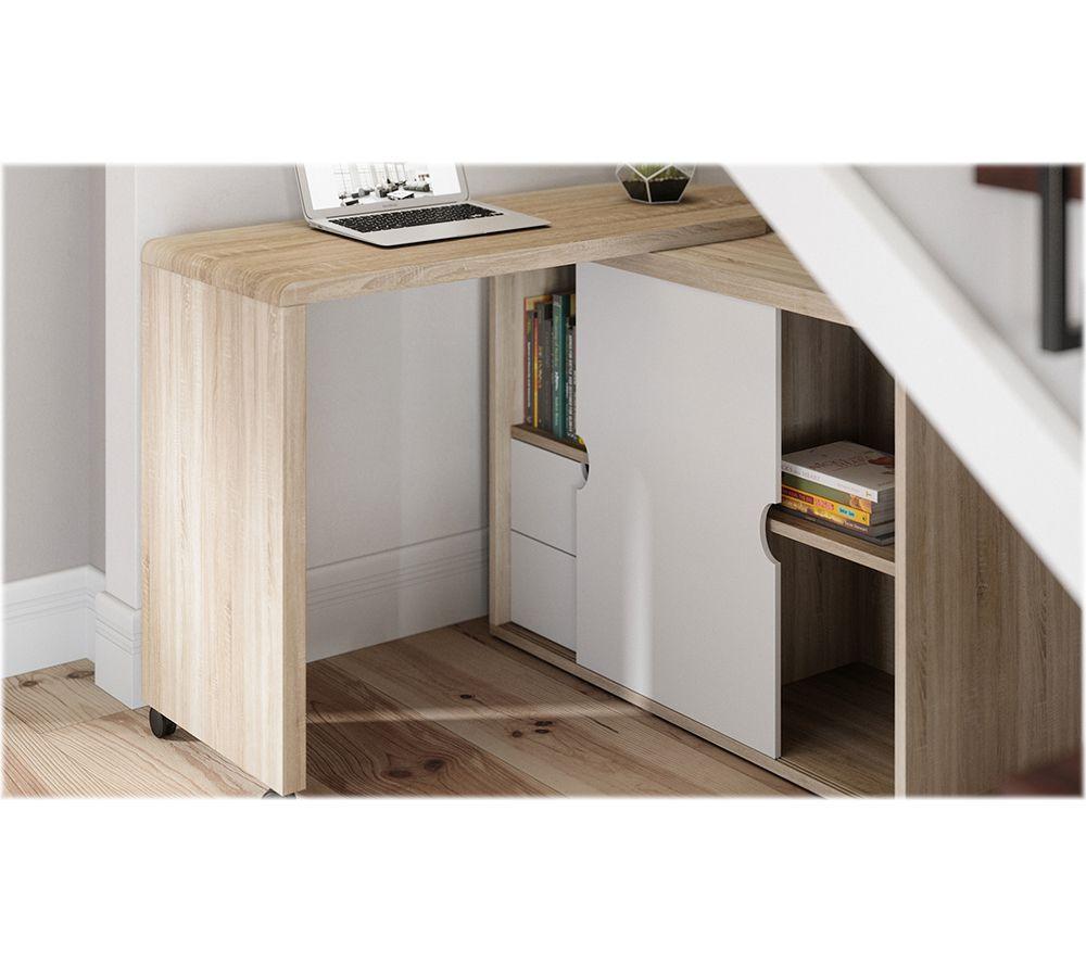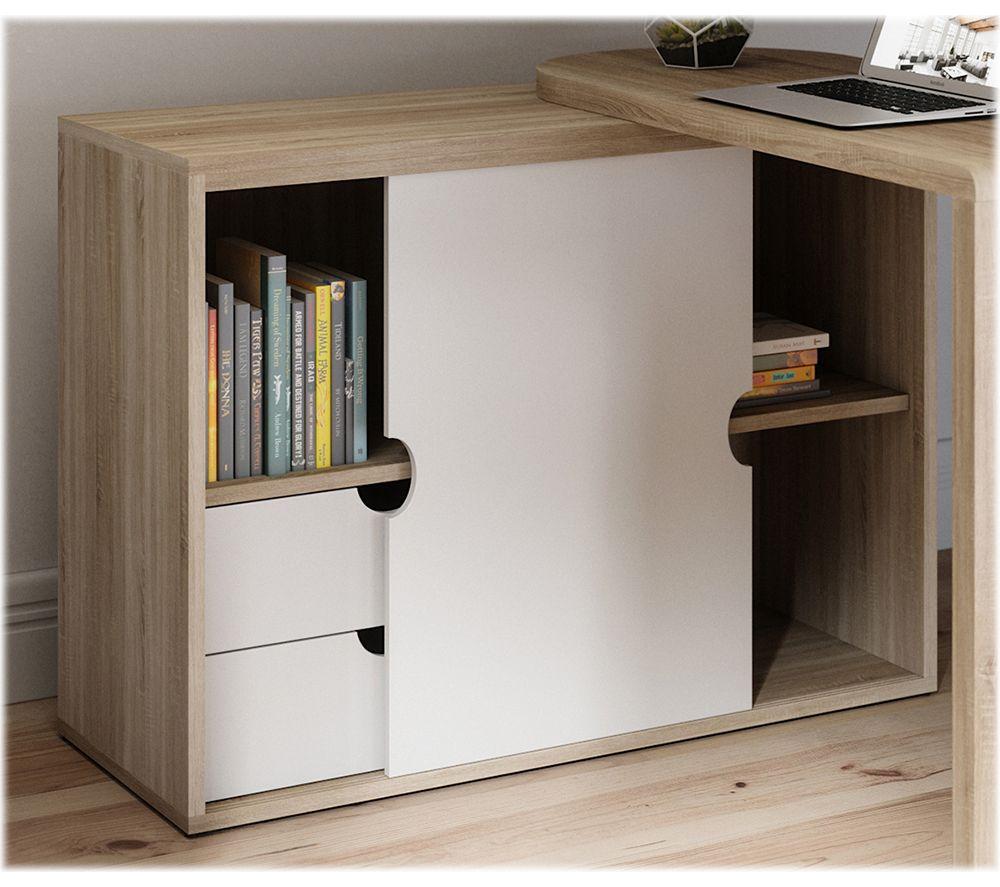 Save space in your home office or living room with this Teknik cupboard desk. It pivots open 90°, so you can use it as an L-shaped desk when you're working, and then push it closed when you've finished. There's also a cupboard that gives you plenty of room for books, folders and accessories.Good to know- The pivoting design means it's ideal for the corner of your room or under your stairs- It works whether you're left- or right-handed – you can assemble it to pivot on either side- There are castors on the desk, so you easily wheel it open and closed- The 3 internal shelves and 2 drawers give you loads of storage space- The sliding cupboard door helps you keep things looking tidy