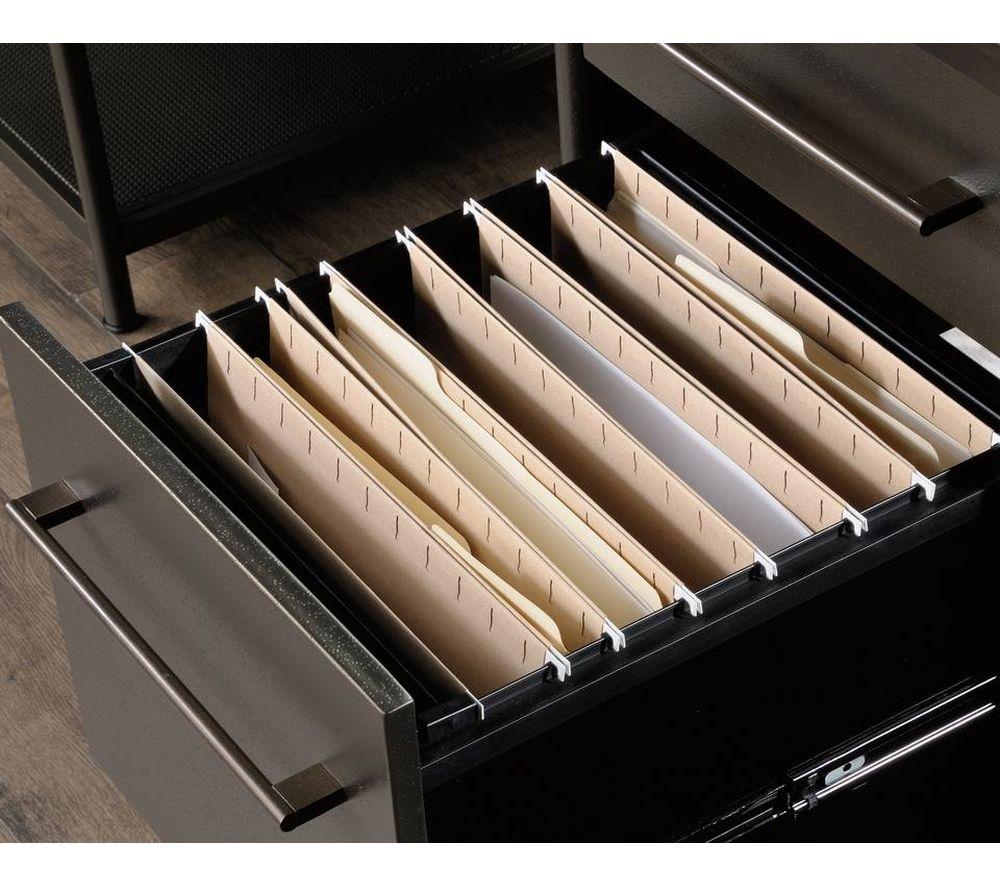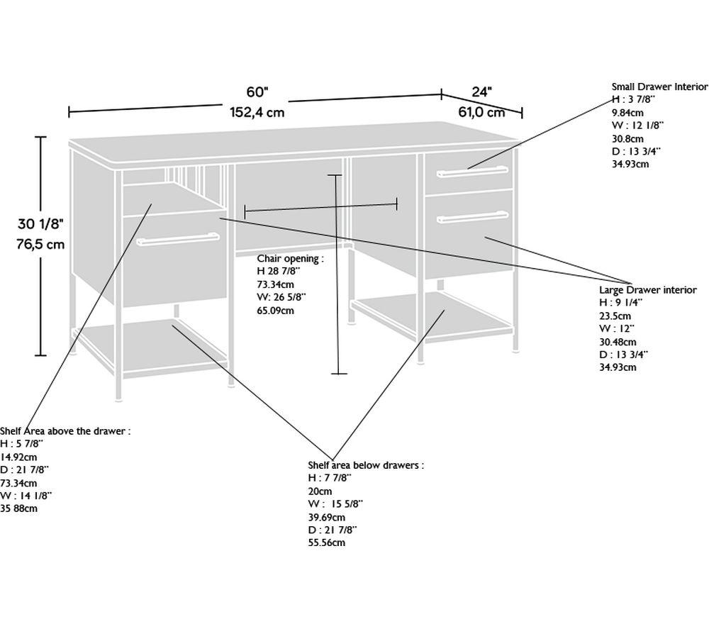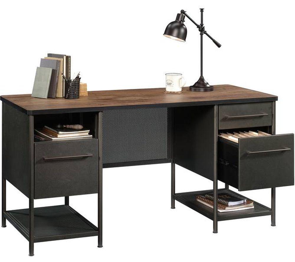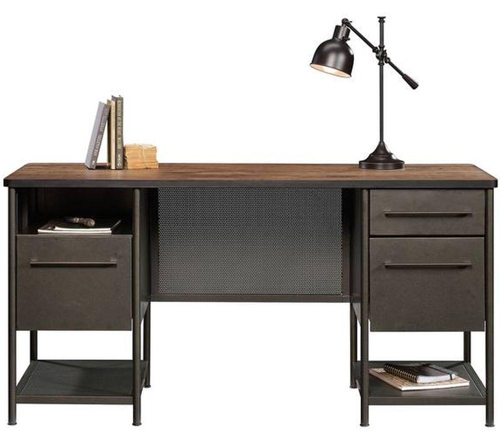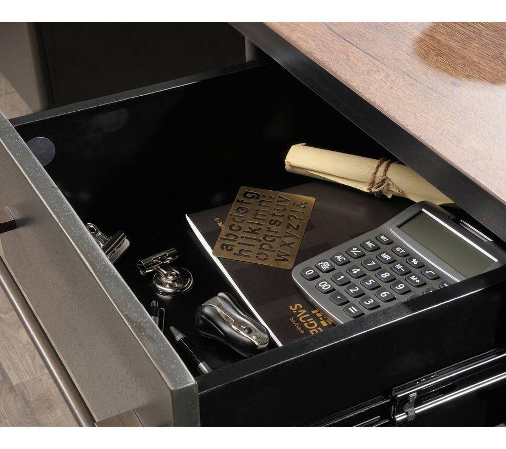 The sturdy metal frame and vintage oak accent of the Teknik Boulevard Cafe Desk will give your flat a timeless look.With 3 drawers, a cubbyhole and 2 lower shelves, you'll have plenty of space for storage. And the lower filing drawers are ideal for your letter-sized documents.