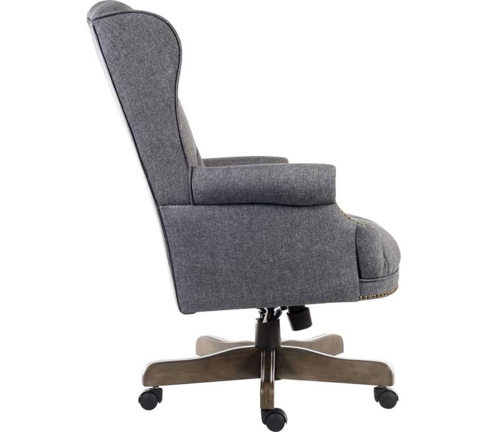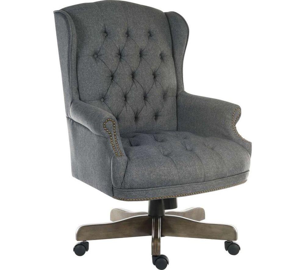 Make important decisions in comfort and style with the Teknik Chairman Fabric Tilting Executive Chair.The button-tufted upholstery and nail-head trim will bring a traditional look to your office.Find the right position with the adjustable height and tilt. This swivel chair also has padded wing armrests for added comfort.