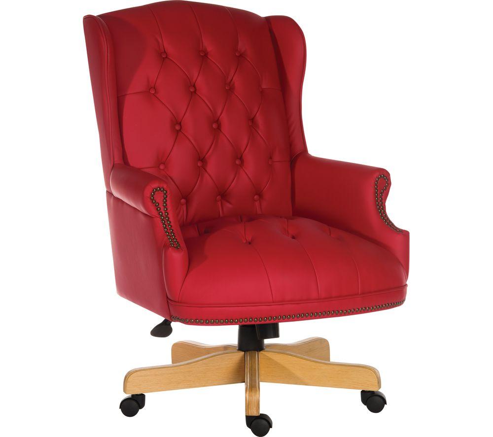Make important decisions in comfort and style with the Teknik Chairman Rouge Bonded-leather Tilting Executive Chair.The button-tufted upholstery and nail-head trim will bring a traditional look to your office.Find the right position with the adjustable height and tilt. This swivel chair also has padded wing armrests for added comfort.