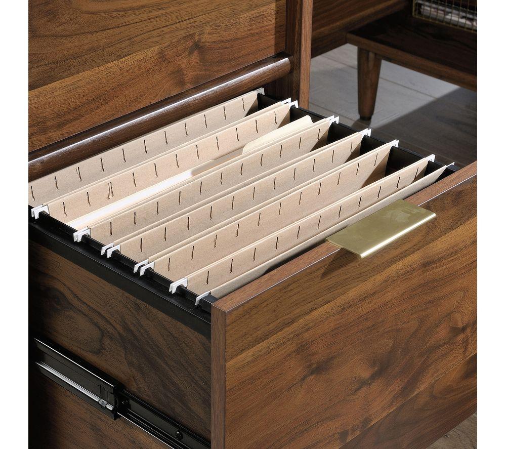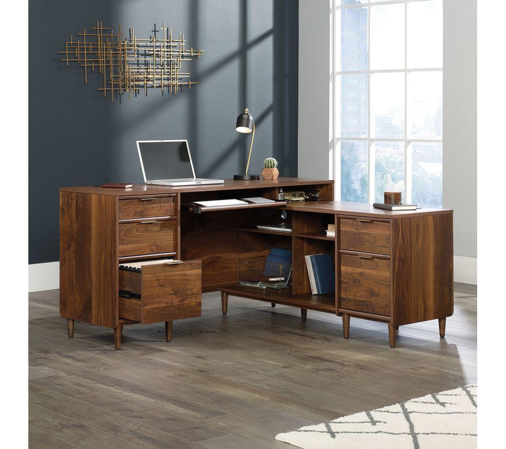 Elegant and practical, the Teknik Clifton Place L-shaped Desk combines a beautiful finish with lots of storage options.The L-shaped design gives you 2 desktops, and the side desk can be fitted on the left or right.There are 3 drawers and 2 filing drawers, plus 4 shelves, so you'll have plenty of space for documents and stationery.The sliding keyboard shelf and cable management slots make it ideal for your laptop or PC too.___________________________________________________________________________Please note:A drill is required to complete the pilot holes during assembly.