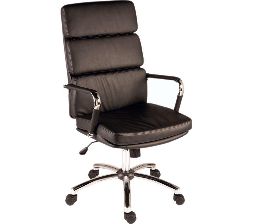 Add a stylishly retro look to your office with the Teknik Deco 1097BLK Faux-Leather Tilting Executive Chair.The bright chrome arms add sophistication. And the reclining function and easy height adjustment help you find the best seating position.Plus, self-assembly is easy, so you'll be up and running in no time.