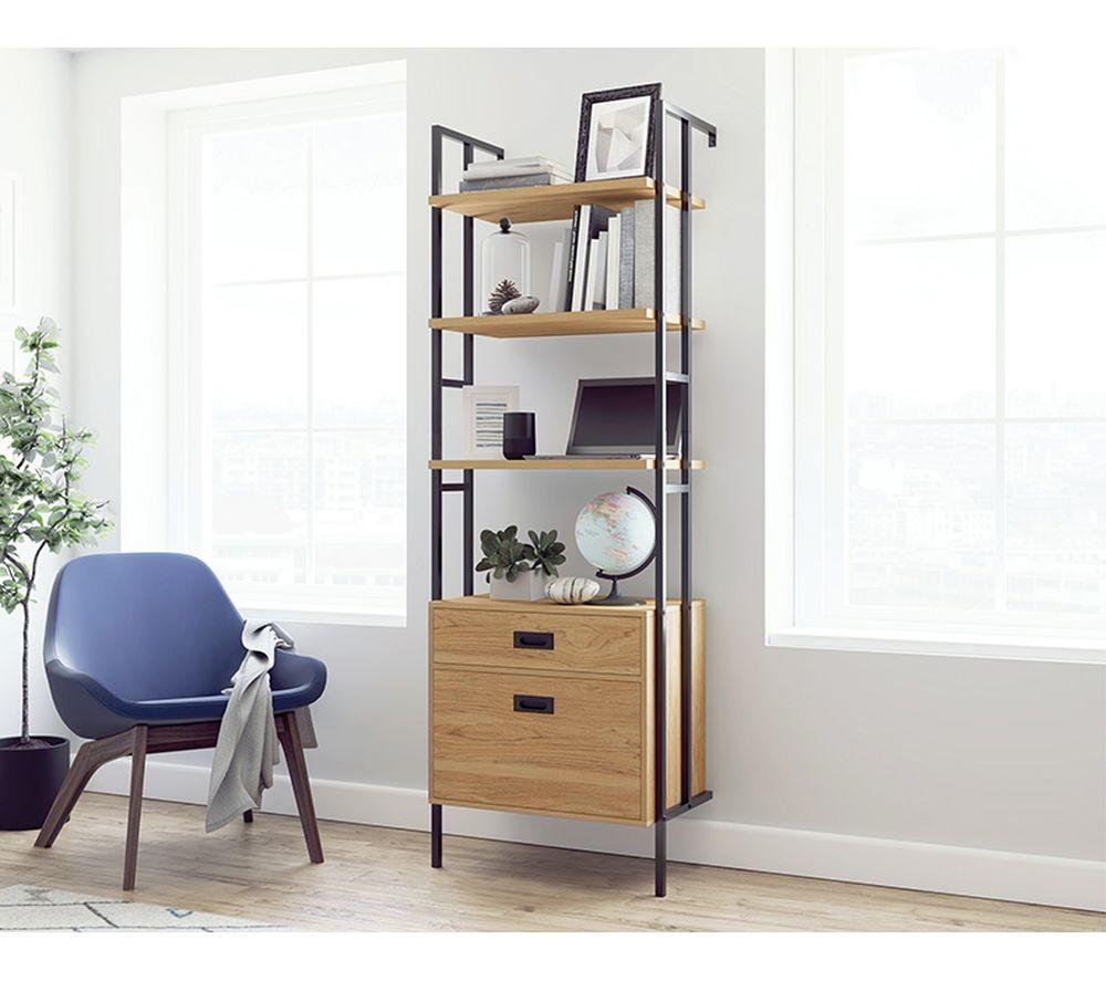 Get a stylish addition to your home interior with the Teknik Hythe 5426438 Wall-Mounted Bookcase. This clever bookcase is a perfect solution for rooms with limited space.It has 4 shelves and 2 drawers, so you'll get extra room for your books or accessories. Plus, the lower drawer is ideal for storage so you can hide any clutter.The powder-coated metal frame also looks great and provides additional stability.