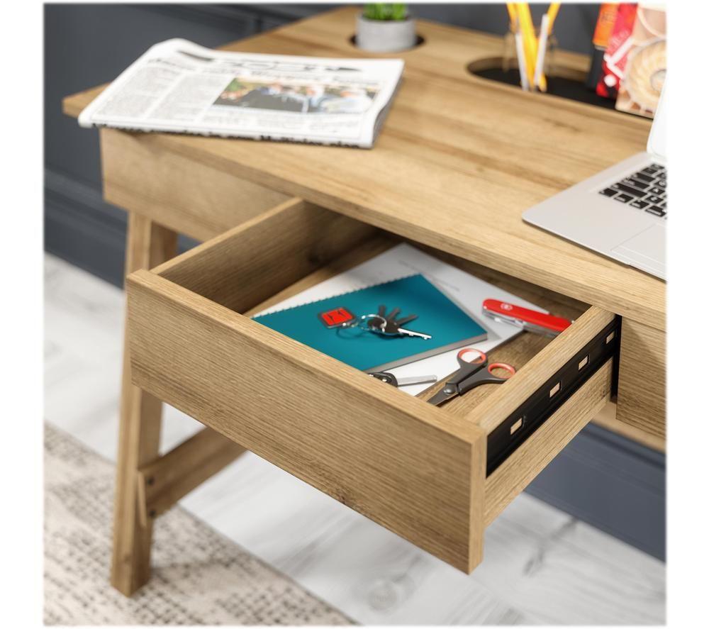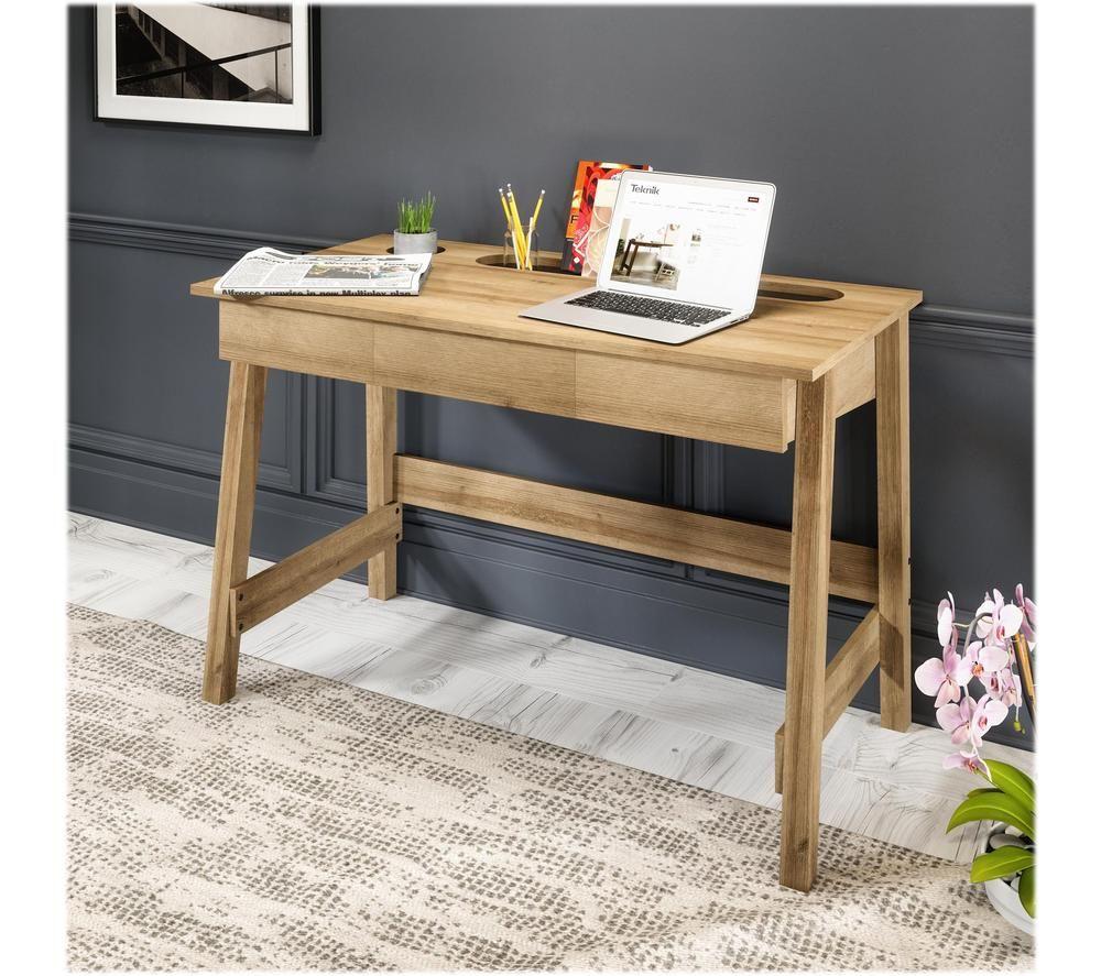 Refresh your home office or study space with the Teknik Ithaca 7700003 Desk. Its clean design blends in wherever you place it.The desk has a central drawer for your documents, and there are handy slots in the desktop for your pens, pencils and other accessories.