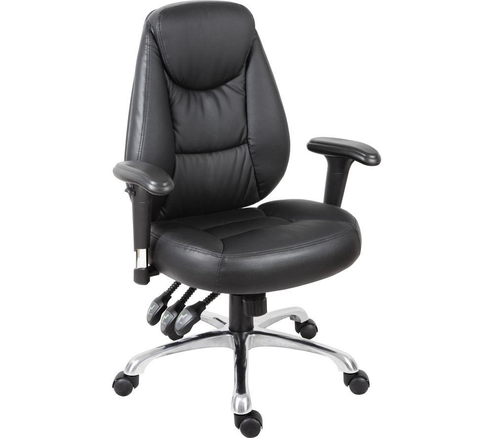Kit out your office with this smart Technik Portland Leather-look Operator Chair. It's ideal as a comfy desk chair and will add a great look to the room.Enjoy enhanced comfort with a supple faux leather seat and padded backrest. You can recline it as required – tilt tension control ensures it stays balanced. Use the gas lift to adjust seat height to the most ergonomic position. Tilt the seat and backrest independently using the three-lever system.The steel base keeps things stable and features castors for easy movability. If you like, the armrests can be popped off to give you more room to move. Since the chair is easy to assemble, you can take it apart for transport if required.