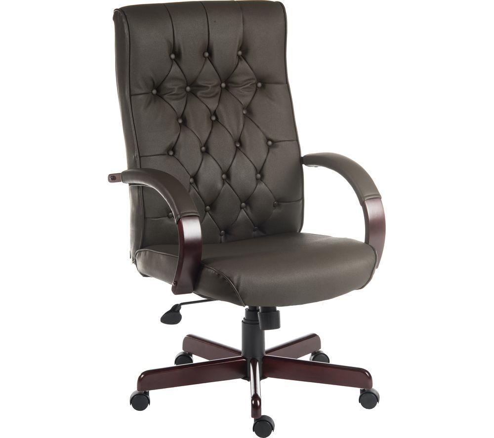 Make important decisions in style with the Teknik Warwick Bonded-leather Tilting Executive Chair.The button-tufted upholstery and wood-coloured armrests will bring a traditional look to your office.Adjust the height with the gas-lift mechanism or tilt the seat to find the most comfortable position.