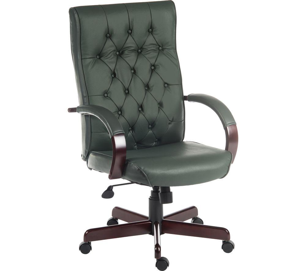 Make important decisions in style with the Teknik Warwick Bonded-leather Tilting Executive Chair. The button-tufted upholstery and mahogany-effect armrests will bring a traditional look to your office. Adjust the height with the gas-lift mechanism or tilt the seat to find the most comfortable position.