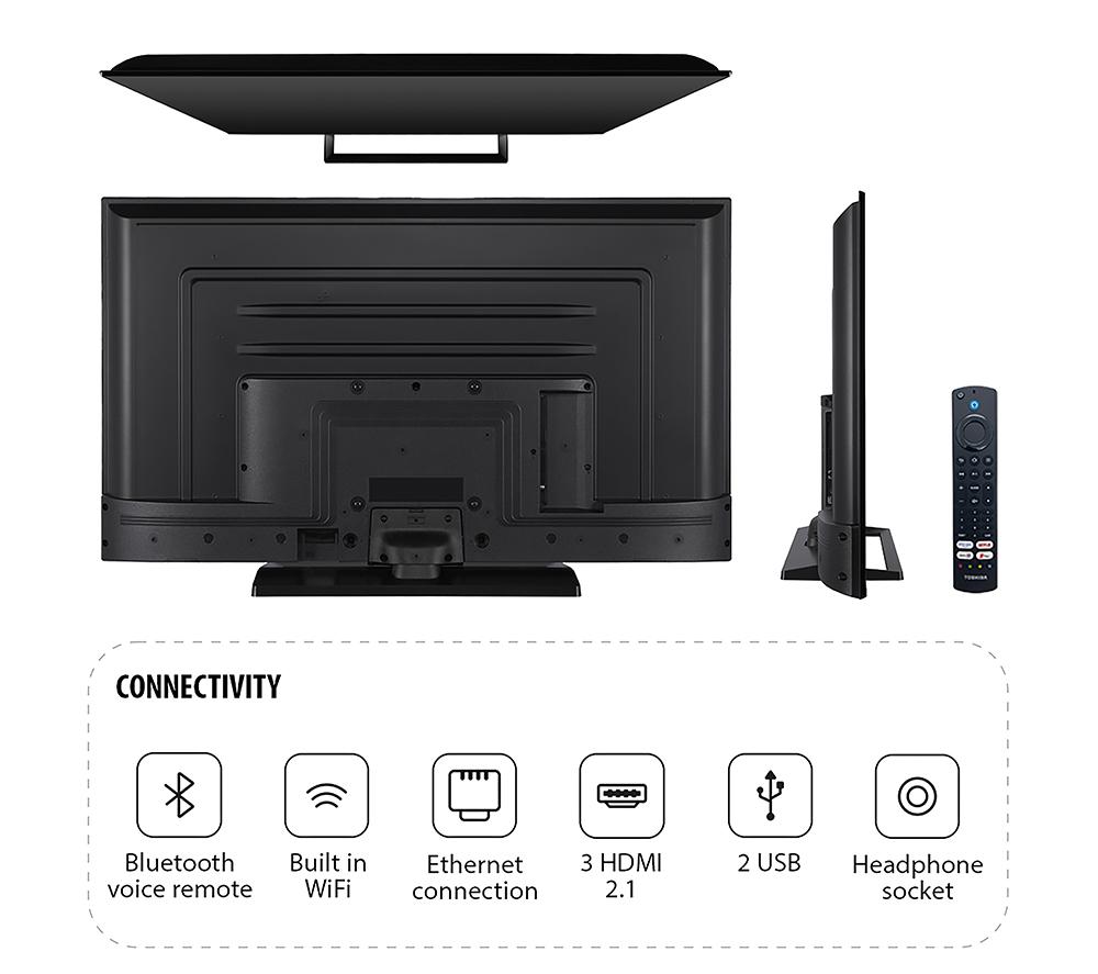 Forget endless scrolling. Fire TV on this Toshiba LED TV brings your recommendations, favourites, and currently watching together in one place. Each family member can have their own profile, so you can keep your shows separate from your kid's favourites. You'll really see the difference when watching Dolby Vision and HDR10 content - it displays a wider range of colours with increased contrast. And you can enjoy darker blacks and brighter whites across the whole screen thanks to TRU Micro Dimming - you'll see more detail in every scene. Good to know - To make the most of those film scores, Dolby Atmos creates a room-filling 3D surround sound effect- Even non-Atmos content sounds great on the Onkyo speakers- Tru Resolution upscales older content into HD, so those classic movies will look better than ever- TRU Flow makes it easier to keep up with the action when watching sports or fast-moving scenes- Use the Alexa voice remote to search on your TV or control your smart home- Freeview Play makes it easy to catch up on episodes you've missed from the past week________________________________Please note: Some apps & services (including tuner) are only available in the UK. Apps & services may be removed or no longer supported by third party content providers at any time. Some apps & services may not be available at launch and may require a firmware update before becoming available. Some services require an account and/or subscription fee.