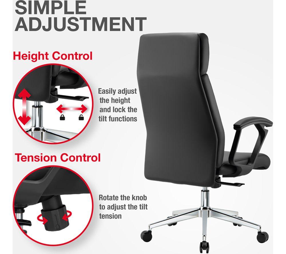 - With adjustable height and padded armrests, this TTAP office chair lets you stay comfy all day long - You can lean back and relax while you work – it has a tilt lock system - The lumbar support helps improve your posture, making those long hours at your desk a little easier - Its strong enough to hold up to 110 kg of weight - Moving around your workspace is easy with its sturdy base and 5 wheels