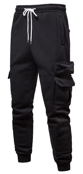 Sweatpants: Good elastic waistband with drawstring, elastic tapered legs, multiple pockets, 2 deep front and rear pockets, can be paired with two large pockets with flaps and a small zippered large pocket to keep your personal valuables safe.