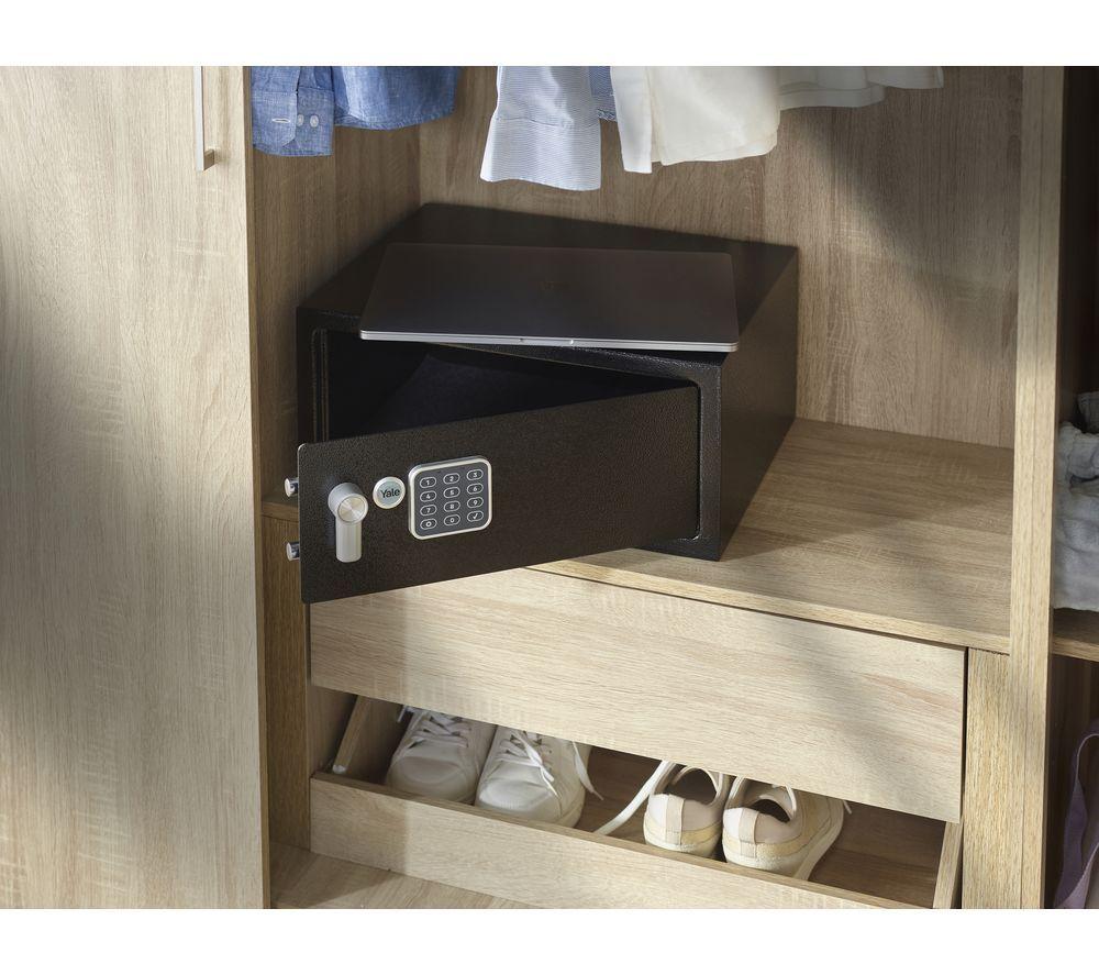 - Keep your laptop secure with this Yale safe – just set a 3 to 8 digit PIN and you're good to go- Forgot your PIN? It comes with two backup keys so you won't get locked out- It has user-friendly indicators - green means open and red means error or low battery- The 16 mm locking bolts are rock solid to keep any potential trouble-makers out- It comes with anchor bolts so you can fix it to a wall or floor for added security