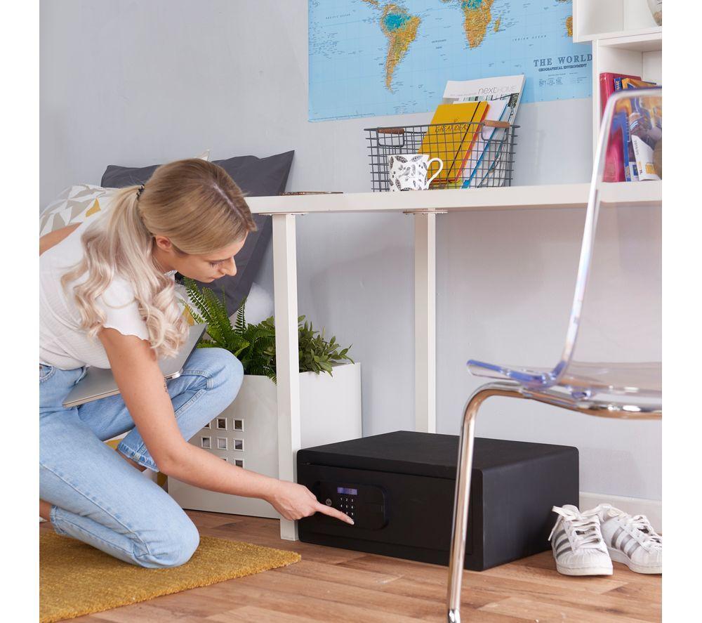 - Keep your laptop secure with this Yale safe – just set a 4 to 8 digit PIN and you're good to go- Forgot your PIN? It comes with a manual override key so you won't get locked out- It has a laser cut door, anti-saw bolts and an anti-pick lock override for peace of mind- The keypad locks down for one minute if you enter the PIN incorrectly three times- It comes with anchor bolts so you can fix it to a wall or floor for added security- The internal light lets you see all your valuables clearly when you open the safe